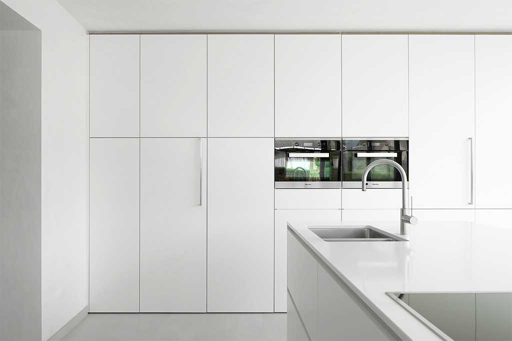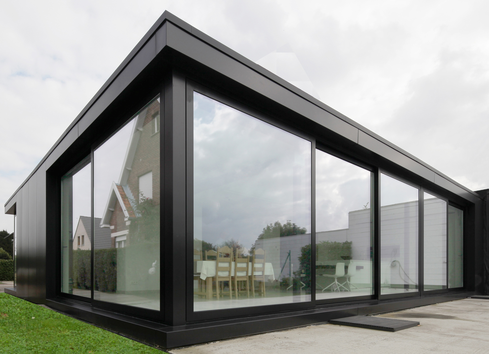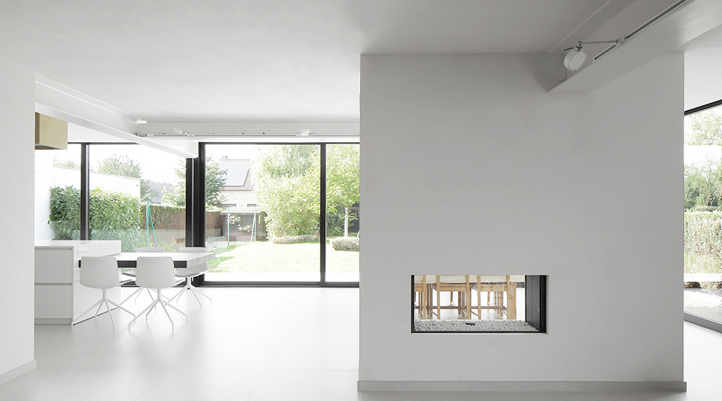 Op deze manier ontstaat een zeer ruime, lichte en open leefruimte die zeer flexibel